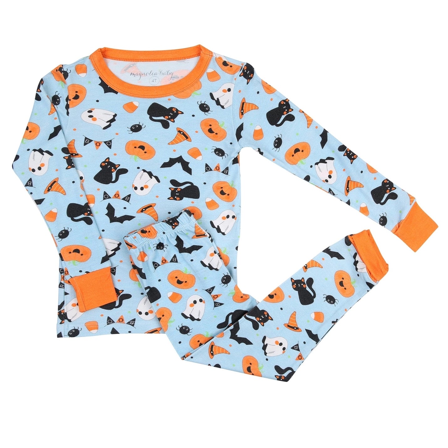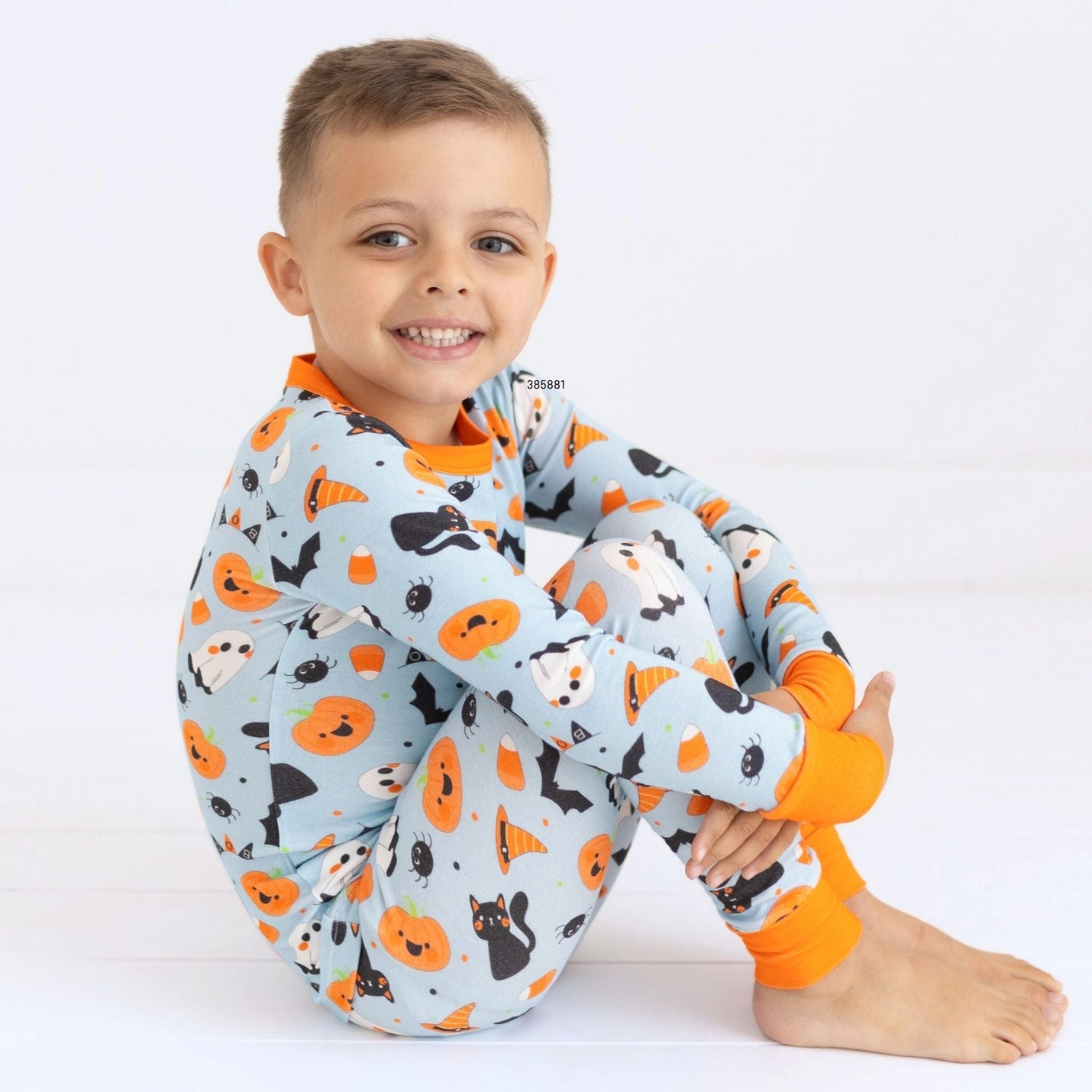 Get cozy in these super-soft Boo to You! pajamas! Made from pima cotton, they rock a cool Halloween design on a classic blue base. Get ready to slay snooze time, little dudes!