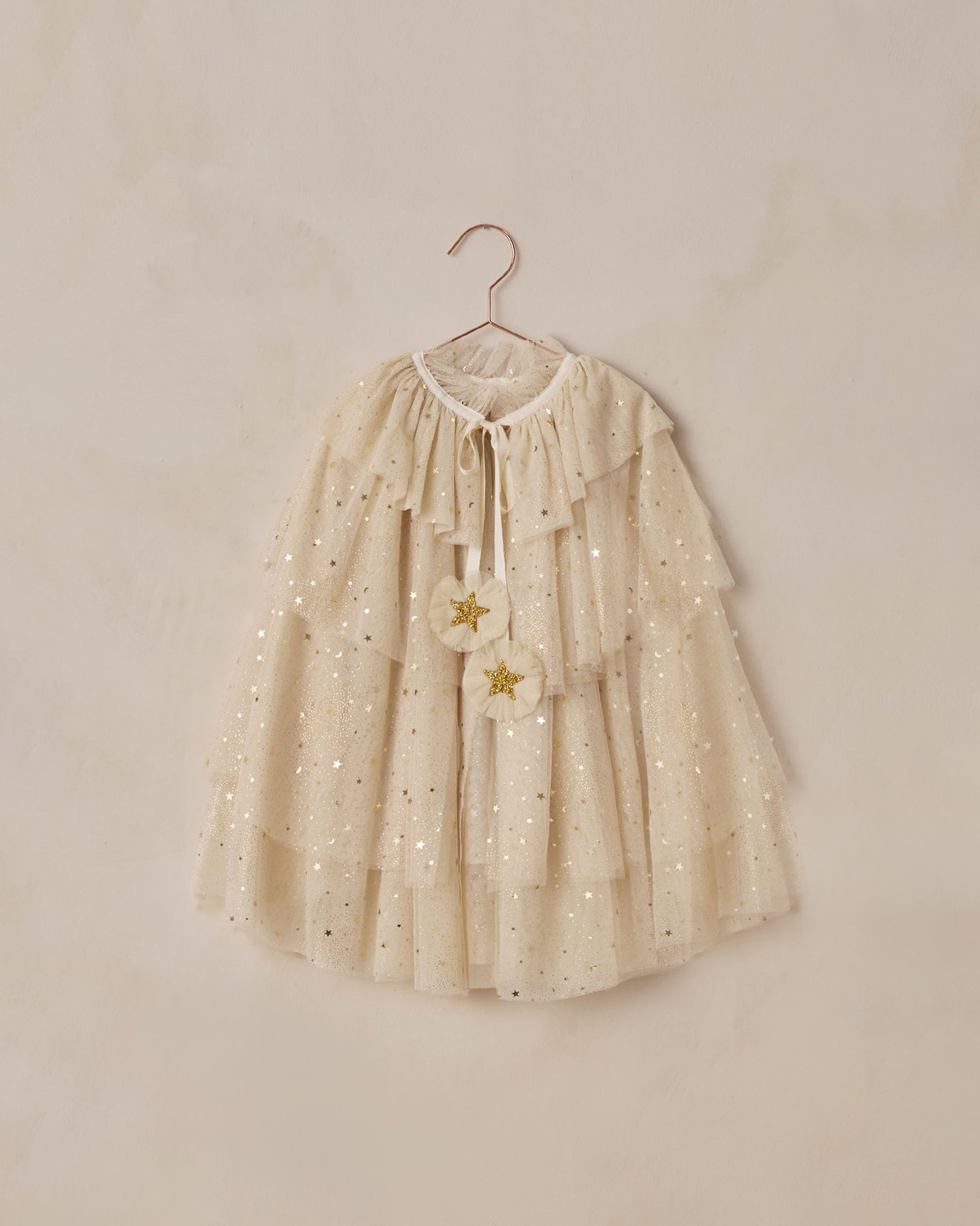 Our Tulle Cape is perfect for little party princesses and enchanting adventures. It features flowing tiered tulle layers and self-ties at the center front for an adjustable, magical fit.